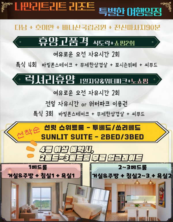 다낭 명품리조트 나만 리트리트 리조트 업글 이벤트 진행합니다^