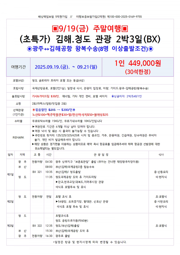 [광주출도착] 부산-청도 2박3일 (금토일) 여행~