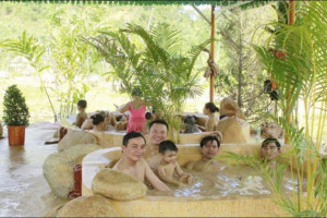 - 머드 전신욕을 즐기며 온천 수영장에서 온천욕 체험