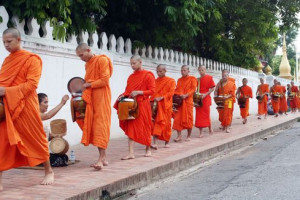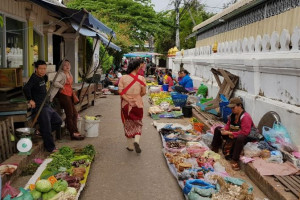 이른 기상 후 탁발행렬 참관 및 새벽 재래시장 관광.